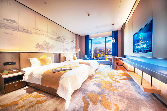 The hotel has 296 comfortable and deluxe rooms. The guest rooms take the lead in using the intelligent systems and bring more intelligent, modern and surprise experience to guests. Hotel rooms are equipped with wireless WIFI, digital TV, mini bar, intelligent mini speaker, Moen bathroom, brand mattress and other facilities. The hotel provides24-hour private butler service, courteous reception of executive floor, etc.