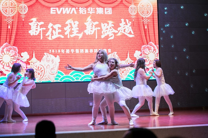 晚宴期間的節目也很精彩。有集團辦的民國風(fēng)舞蹈,物業(yè)公司動(dòng)感十足的舞蹈串燒,也有劉氏家族小伙伴帶來(lái)的歌舞串燒,深情獻唱《成都》,最轟動(dòng)的是地產(chǎn)銷(xiāo)售部獻上極具部門(mén)活力朝氣的激情操,臺上的表演者和臺下的部門(mén)同事,全體一起舞動(dòng)著(zhù)青春和激情,以及代表著(zhù)裕華敢于嘗試、勇于展現自我的企業(yè)公司選送節目《我的天鵝時(shí)代》,惡搞芭蕾舞《天鵝湖》中的一段經(jīng)典舞蹈,臺下同事無(wú)不捧腹爆笑,指著(zhù)表演者叫到:“啊,哈哈,那只肥鵝......”