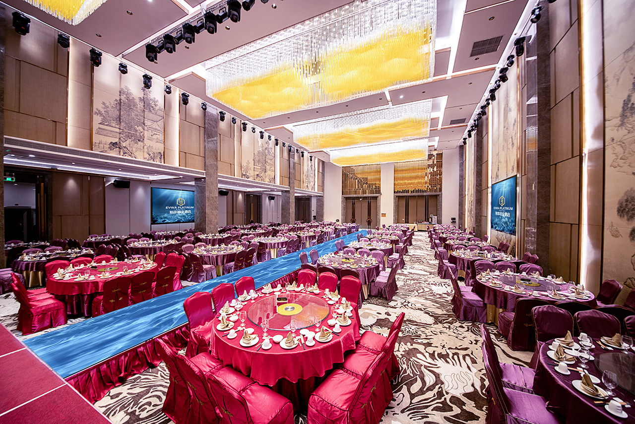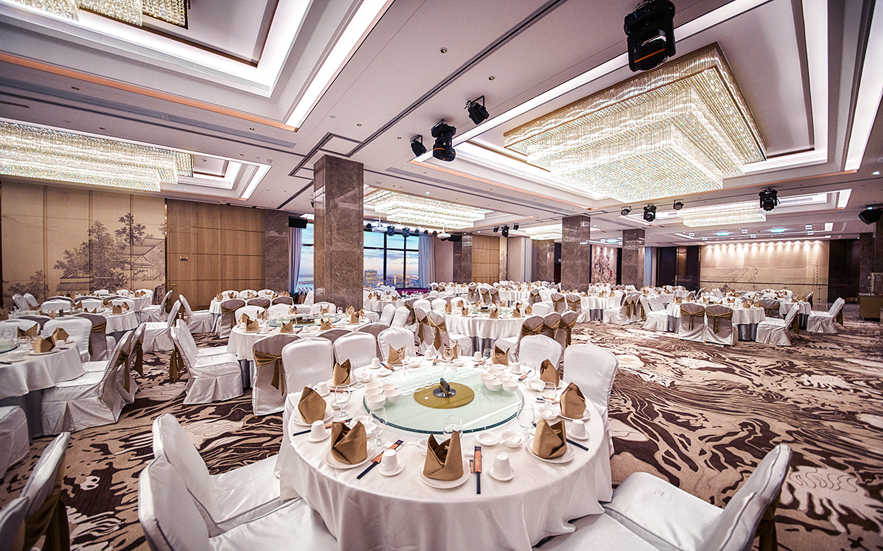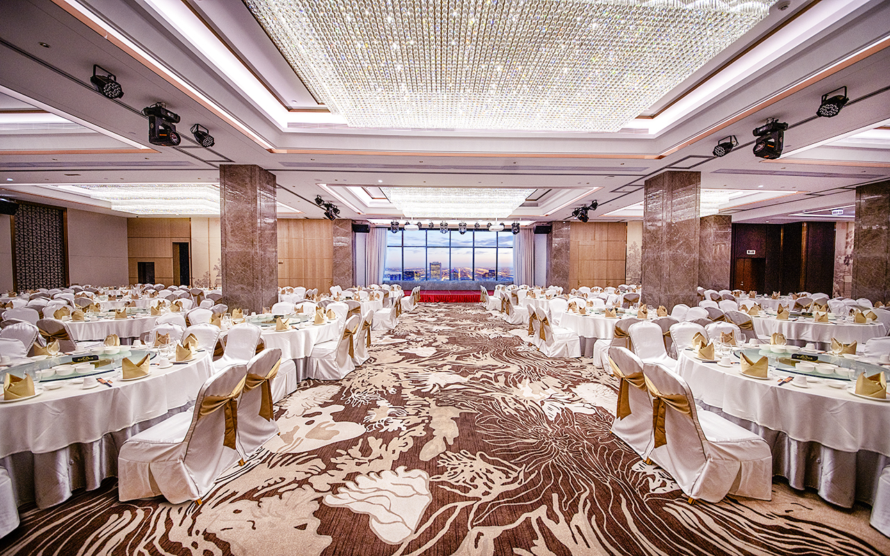 擁有鉑金廳、鉆石廳、翡翠廳、水晶廳四個(gè)宴會(huì )廳及適合各式商務(wù)宴請豪華包房,宴會(huì )廳配備全息裸眼5D投影以及完善的宴會(huì )設備,可容納幾十、幾百、甚至上千人的喜宴、戶(hù)外婚禮、高端私人PARTY、商務(wù)宴請、文化交流等活動(dòng)。